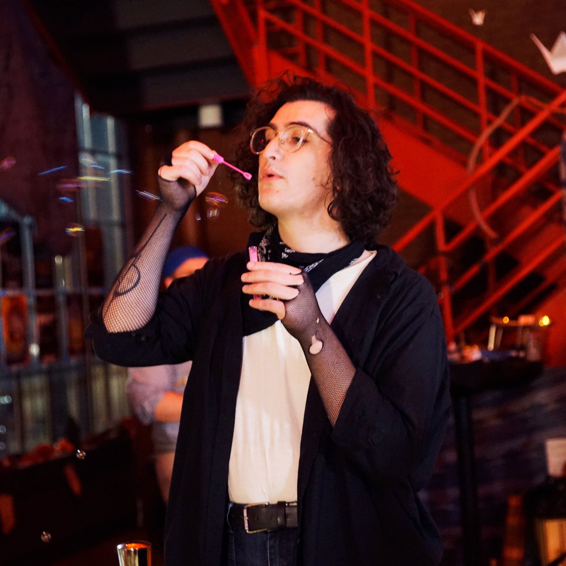 K Adler is a multidisciplinary artist and producer based in Franklin County. They work with Eggtooth Productions to perform in immersive and drag theater projects. A co-founder of Cloudgaze Productions, they facilitate artistic laboratories and experimental experiences including collaborations with the Shea Theater (A Happening), Green River Festival, The School for Contemporary Dance & Thought and Play Incubation Collective. Their work has been supported by MassMoCA's Assets for Artists '22, '23, and a weekly “Art Chat with KAT” is featured on 93.9 The River radio, speaking about Art and Culture in Franklin County, MA.